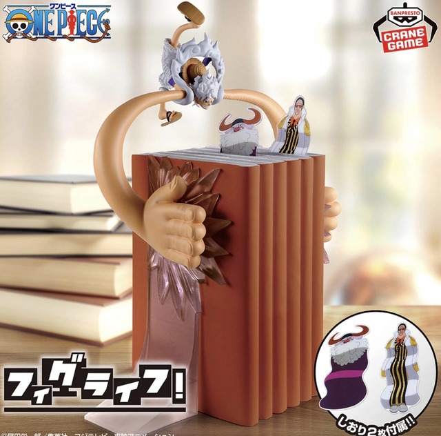 「フィグライフ!」シリーズよりギア5のルフィが登場!ブックスタンドとしても使用可能!ギア5ルフィの白い万力の攻撃を受けたサターン聖、ボルサリーノも栞にて付属! 商品仕様 ・全1種 ・約27cm
