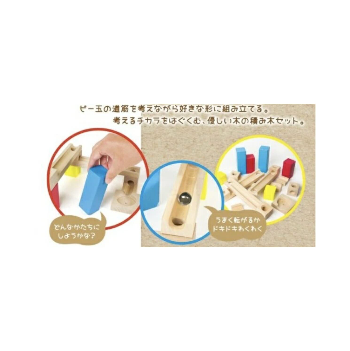 集中力、発想力、手先の感覚を鍛えるのに最適な商品です。 積み木の組み方は無限大、玉の転がりを見て好きな形に組んでみよう。 ・対象年齢6歳以上。 ・びーだま6個付き。 万が一不良品の場合はメーカーにお問い合わせください 写真はイメージです、多少異なる場合があります