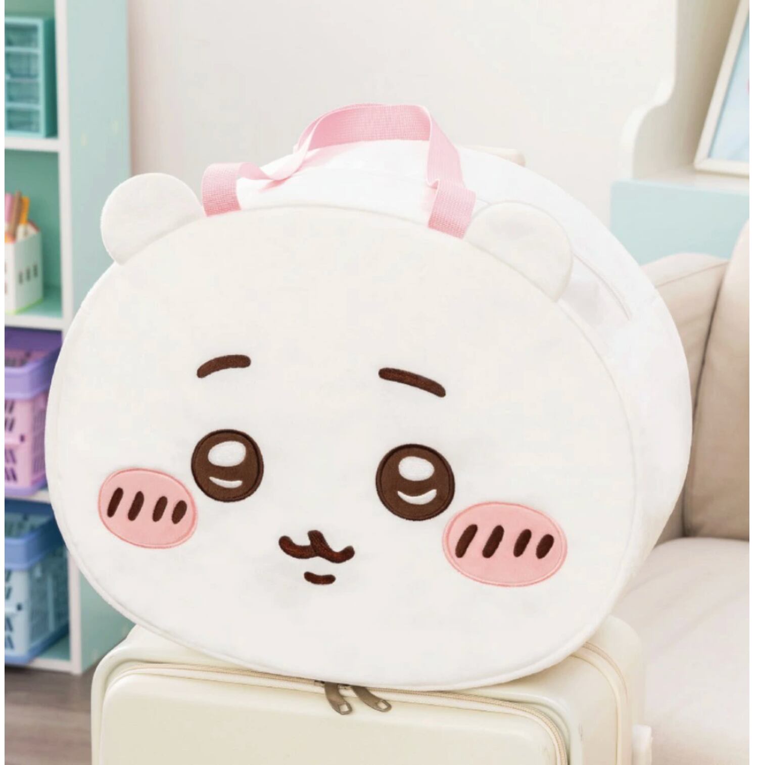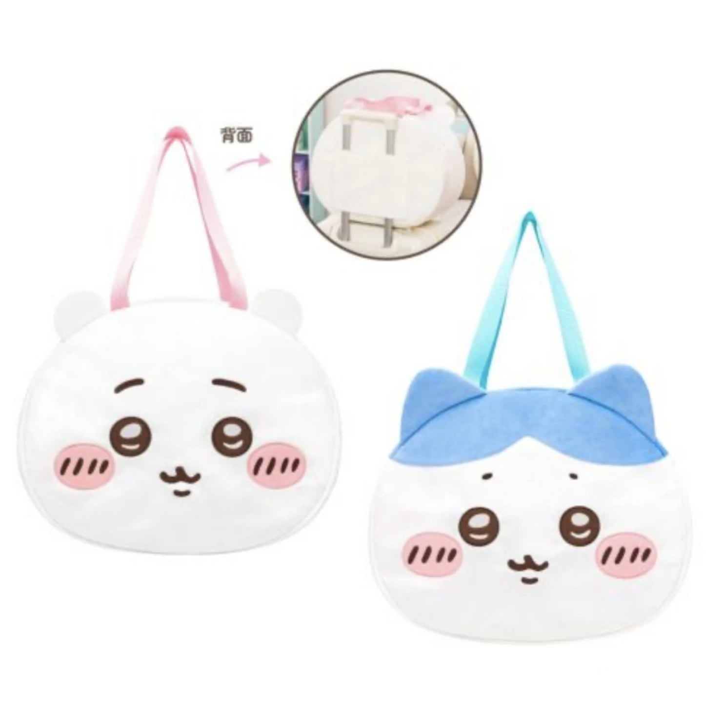 旅行にも大活躍! スーツケースにも取り付けできるとっても便利なおかおのバッグ ちいかわ、ハチワレの2種類です 種類:全2種 サイズ:約H34×W42×D19cm