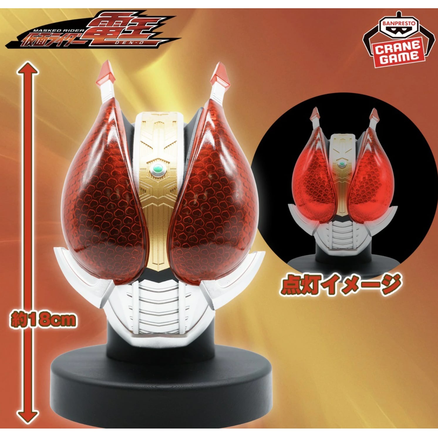 BIGサイズソフビシリーズより『仮面ライダー電王』のマスクディスプレイ商品が登場! 目がクリアパーツになっていて光ります。 今後もシリーズ続々登場予定! 商品仕様 ・全1種 ・約18cm